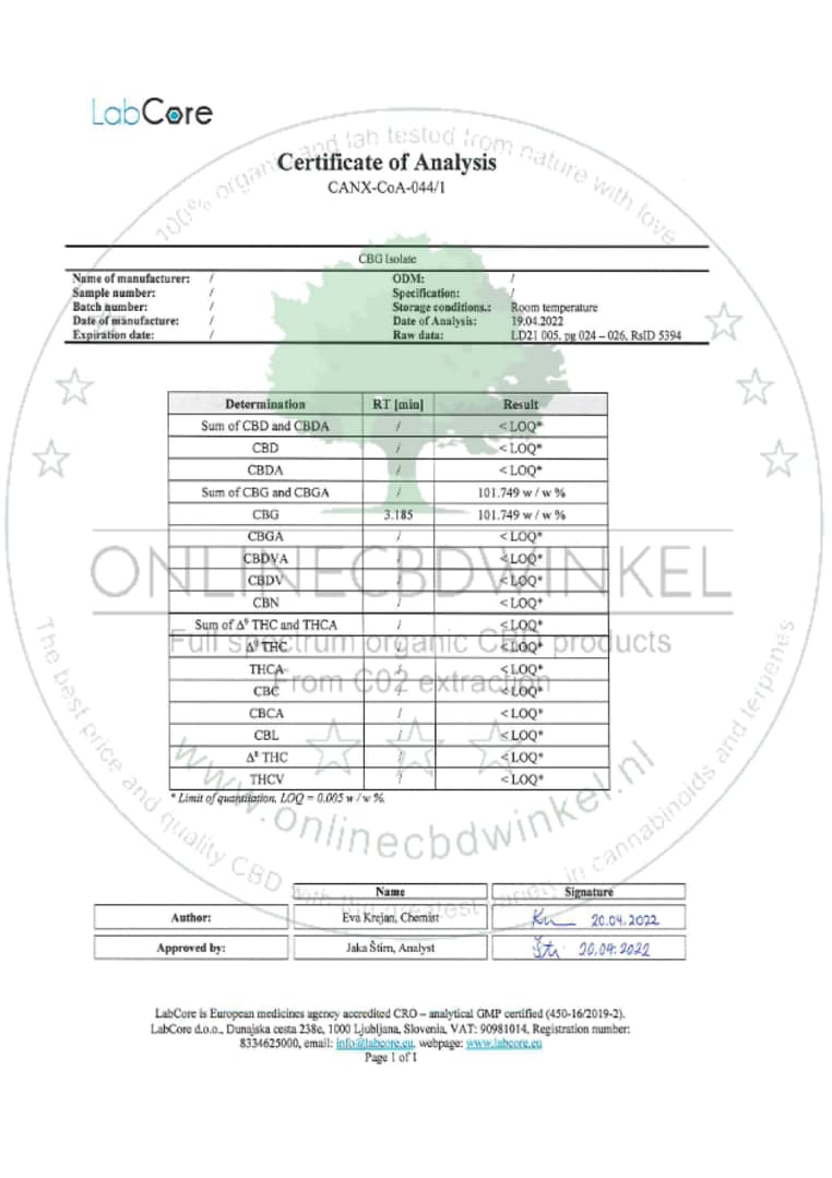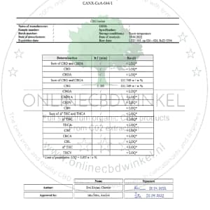 - Volledig traceerbaar en gecertificeerd CBG Isolaat (zie certificaat)