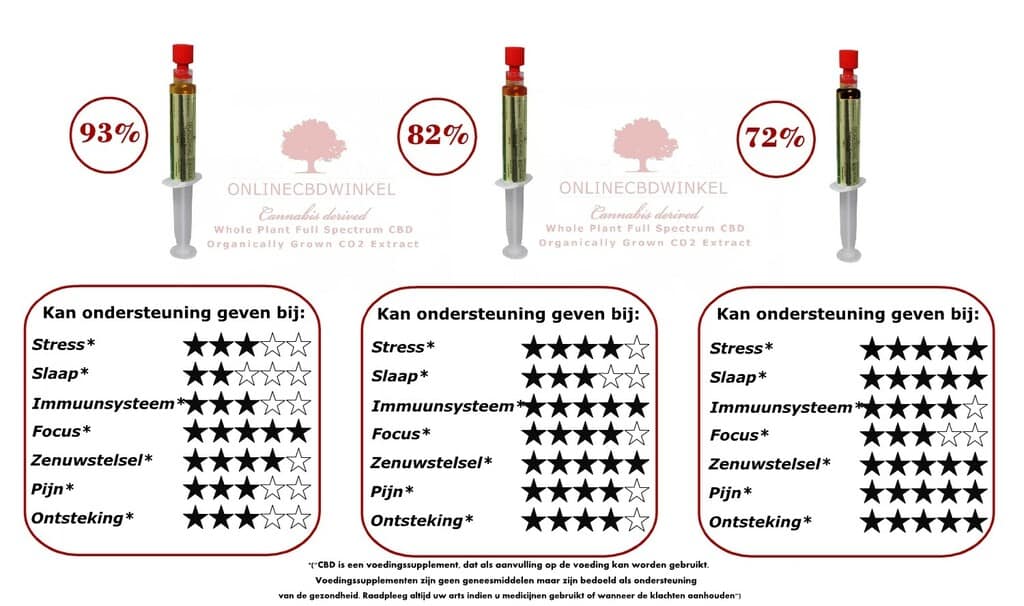 Wij van ONLINECBDWINKEL werken altijd in nauw contact met onze klanten en ontwikkelen van daaruit onze producten. Uit zowel wetenschappelijk onderzoek als gebruikerservaringen met onze CBD producten hebben we gemerkt dat niet alle samenstellingen in cannabinoiden/terpenen dezelfde werking geven voor ons lichaam. Om ervoor te kunnen zorgen dat u er makkelijk achter kunt komen welke samenstelling het beste werkt voor uw klachten hebben wij een testpakket samengesteld zodat u snel de resultaten kan bereiken waar u naar zoekt.